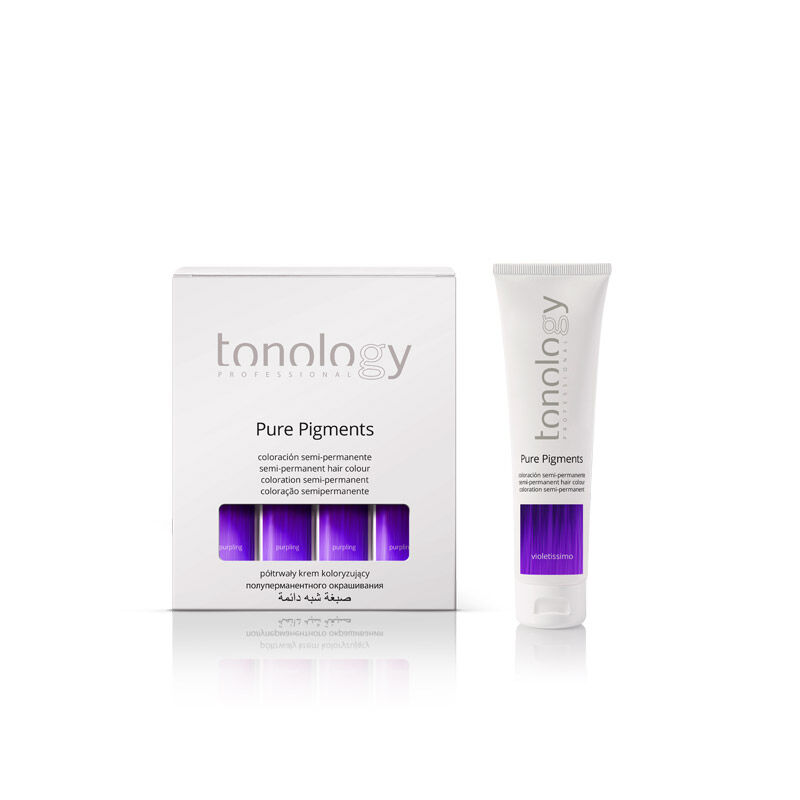 Tragen Sie Tonology Pure Pigments auf gewaschenen und handtuchtrockenen Haaren (Handschuhe sind dafür notwendig). 15-30 Minuten einwirken lassen und gründlich ausspülen.