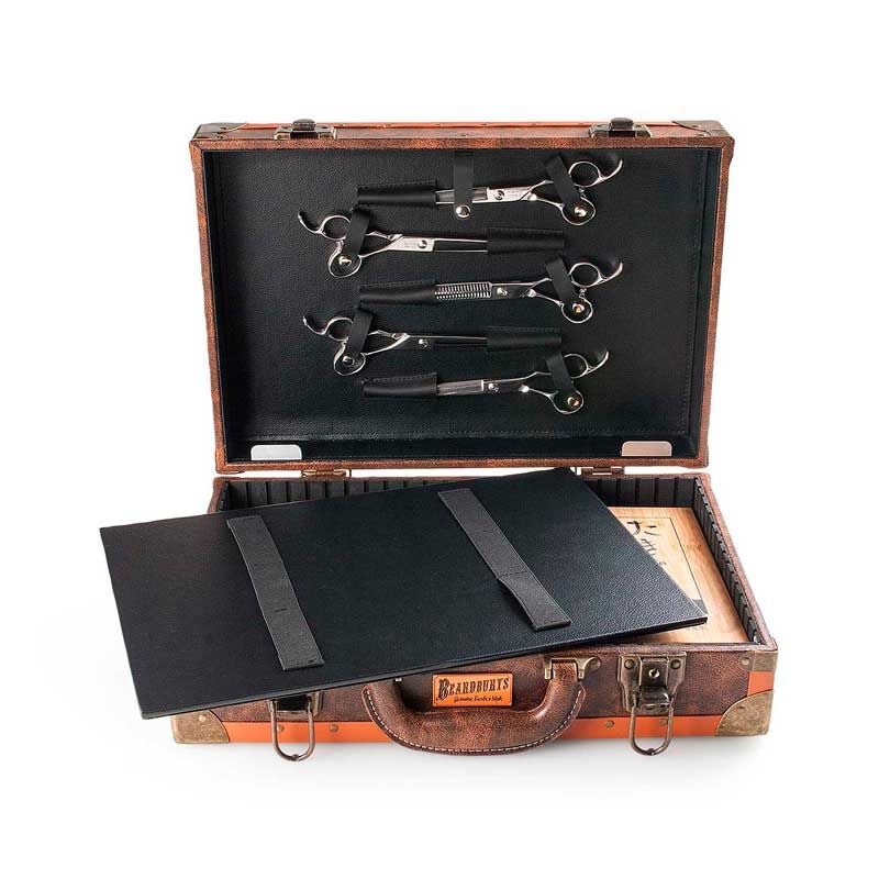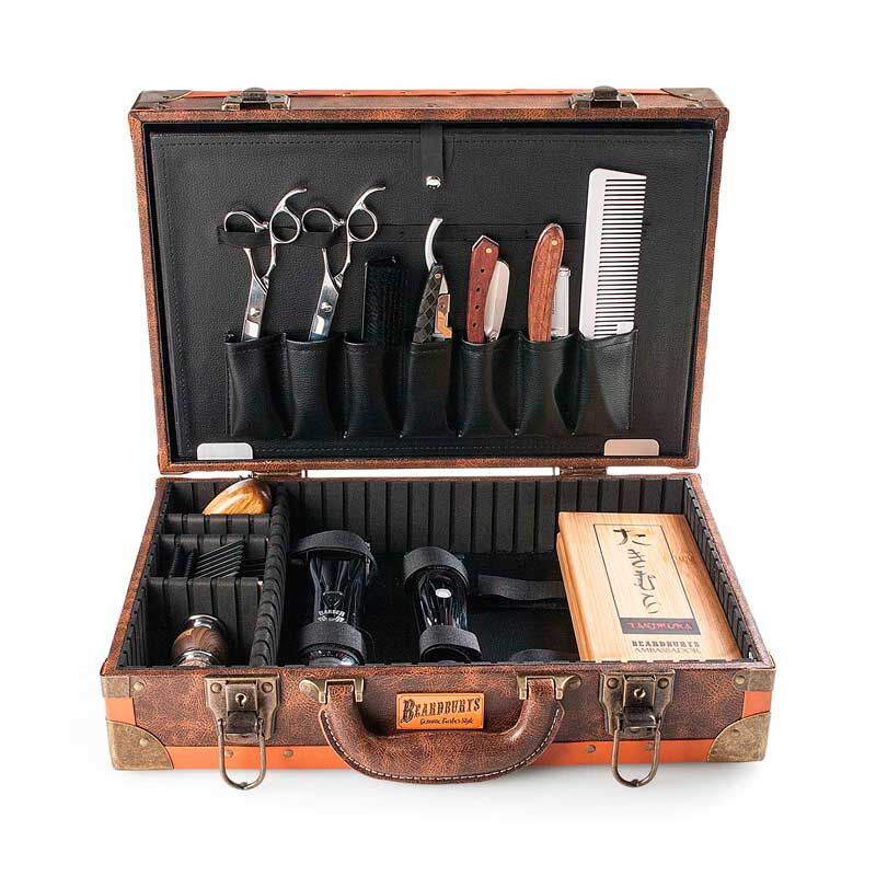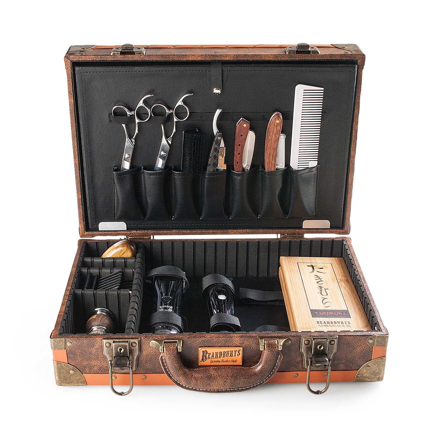 Con un diseño vintage, este maletín incluye un compartimento donde guardar de forma práctica todos las herramientas y utensilios de barbería.