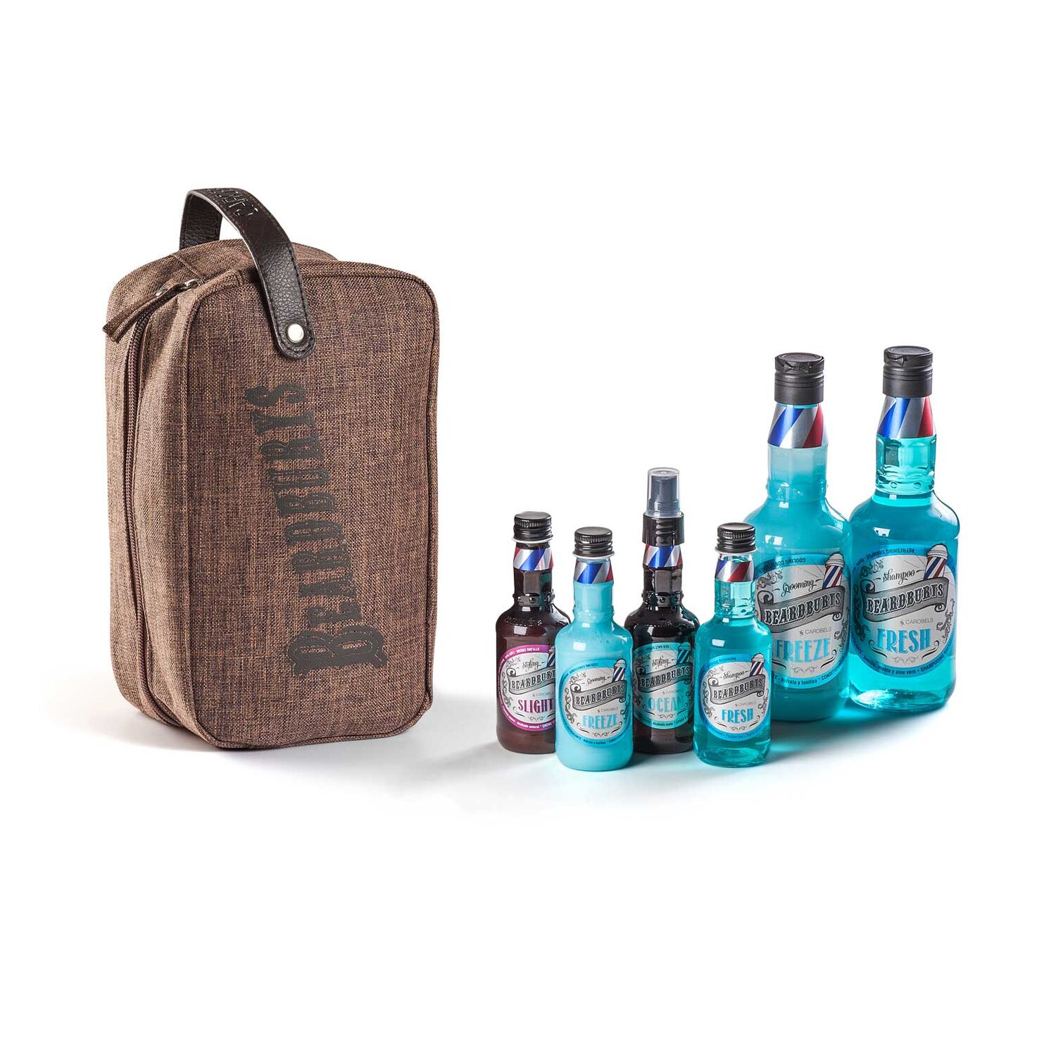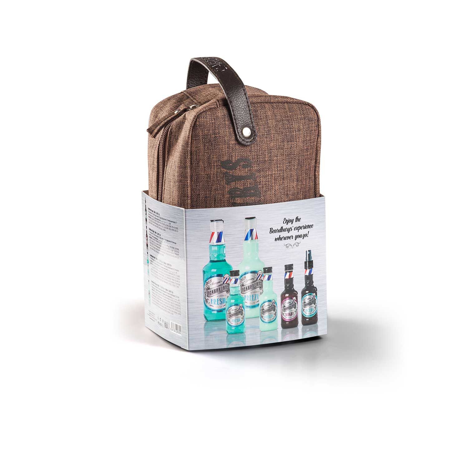 A pack with refreshing shampoo and conditioner and Beardburys hair fixings. All this in a practical toiletry bag.