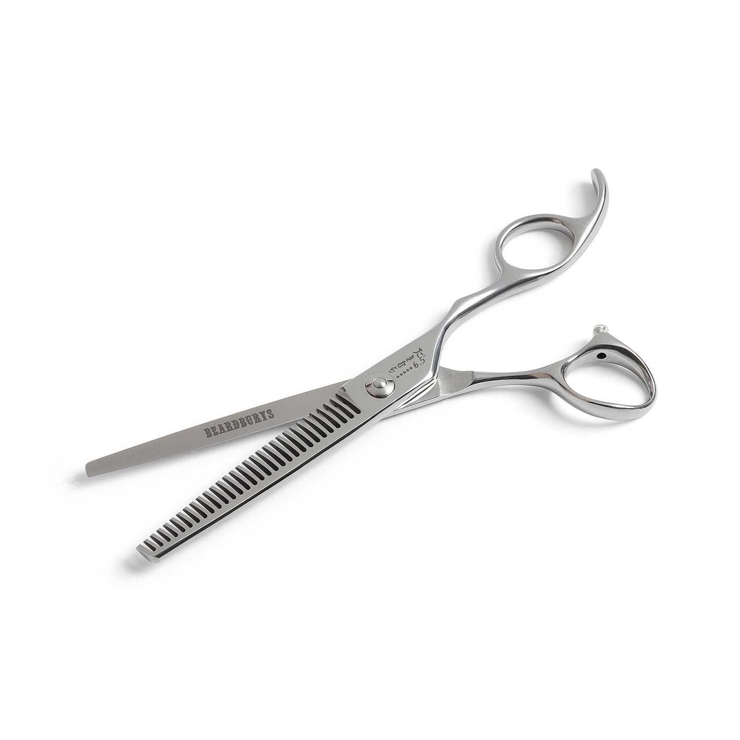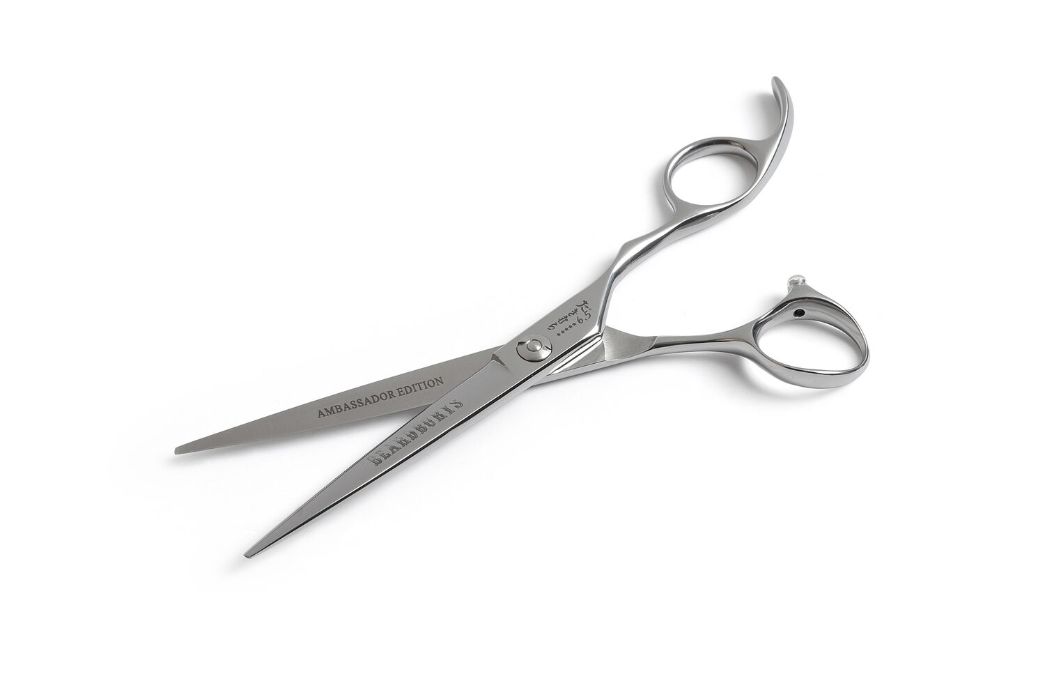 The "Ambassador" edition of Takimura scissors incorporates convex profile blades in the purest Japanese sharpening style. This cutting edge shape provides a more precise quality razor-like cut. The glide of the scissors is smooth. Both features make them the right tool for working with modern cutting techniques such as slide.