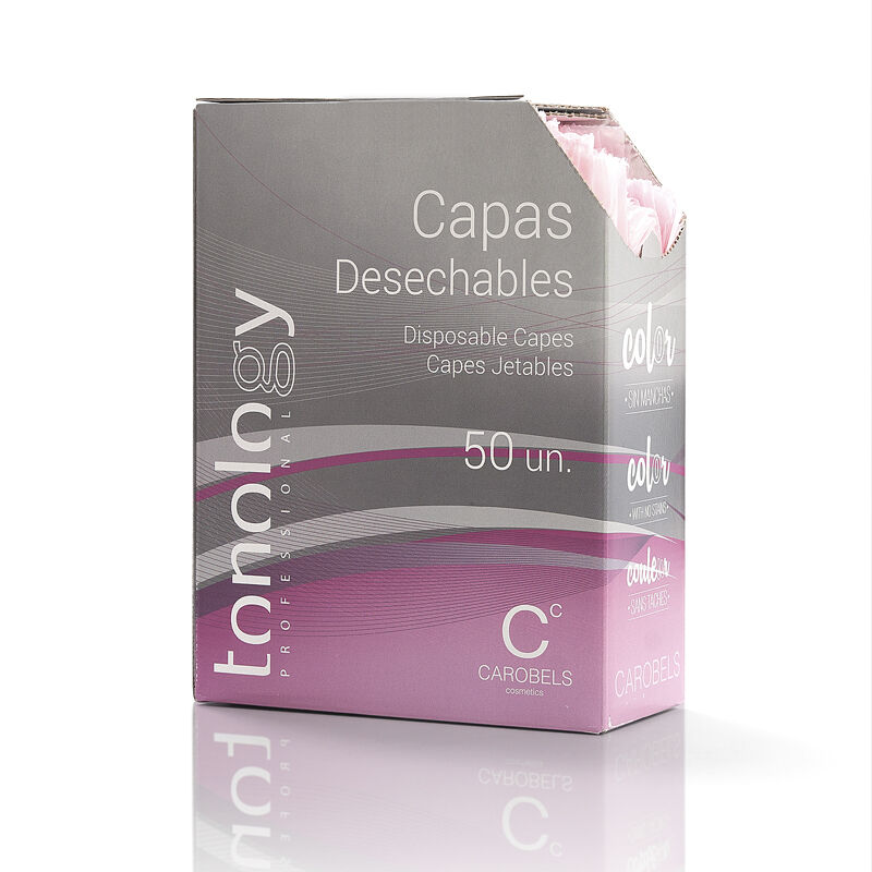 Disposable coloring capes made of polyethylene. Resistant and waterproof. The disposable coloring capes are ideal for hairdressing professionals. With ribbons in the neck for a perfect fit.